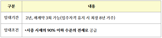 대상으로 시중 시세의 90% 이하 수준의 전세로 임대합니다.