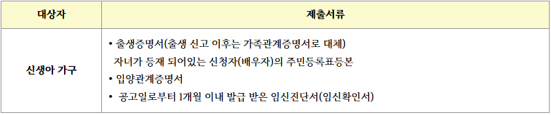 - 신청자격은 입주자 모집공고일부터 입주 시까지 계속 유지조건