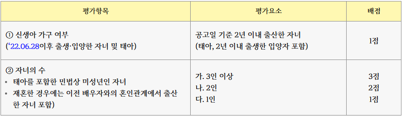 정리했습니다. 신생아 가구, 다자녀가구에게 배점이 더 있어