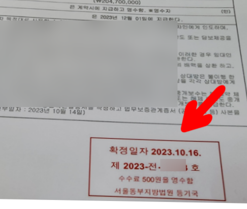 확정일자를 받습니다. 600원의 수수료가 발생합니다. 대리인이