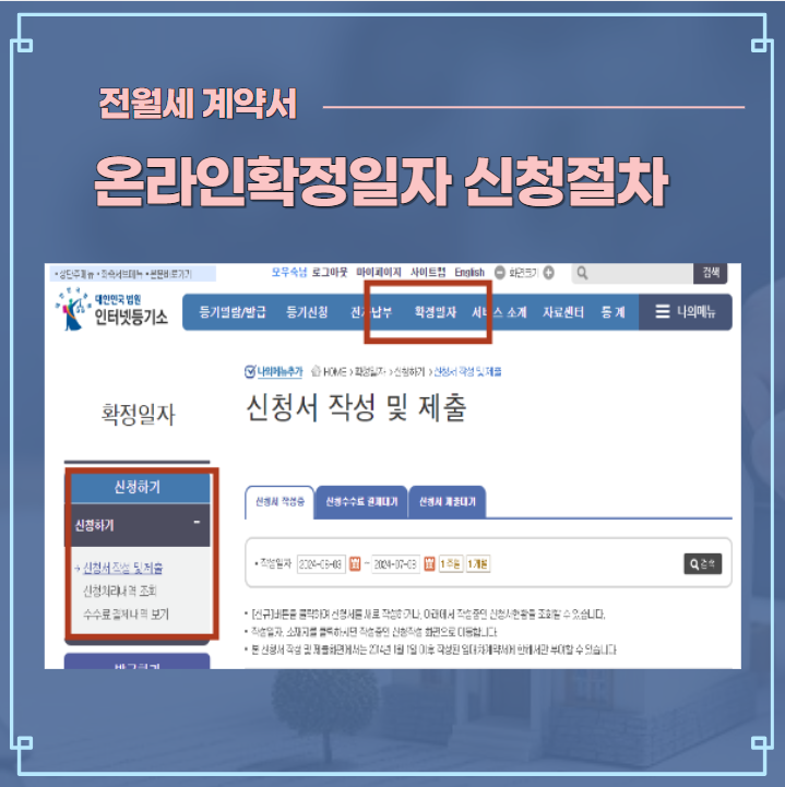 → 신청서(전자적) 제출 → 온라인 확정일자 발급