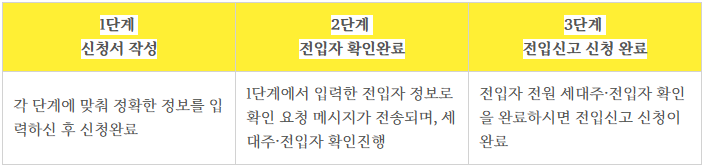 세대주. 전입자가 모두 확인을 완료해야 신청이 완료됩니다.
