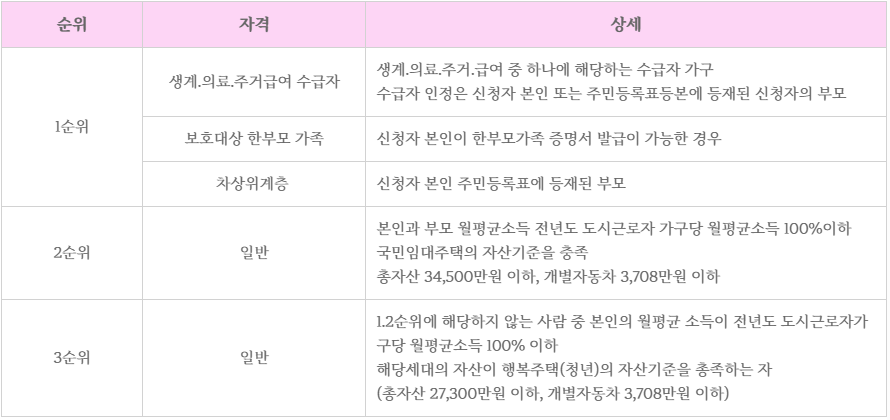 신청자격은 입주자 모집공고일부터 계약시까지 유지해야 하며