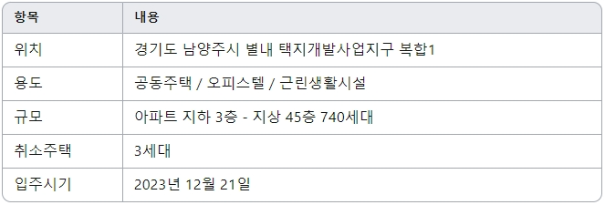 ● 위치 : 경기도 남양주시 별내 택지개발사업지구 복합 1