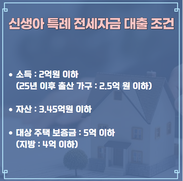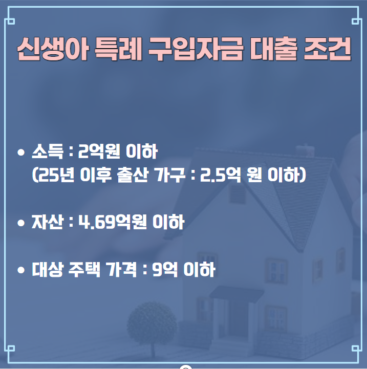 신생아 특례대출의 기본적인 신청 조건은 아래와 같습니다.