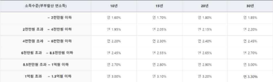 여기서 연소득 8500만원 이상이면 0.55% 가산, 그 이하일 경우 시중은행 기준