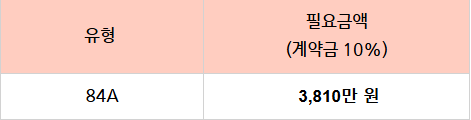 당장 계약금 10%를 납부해야 하기에 필요한 현금은 3,810만 원입니다.