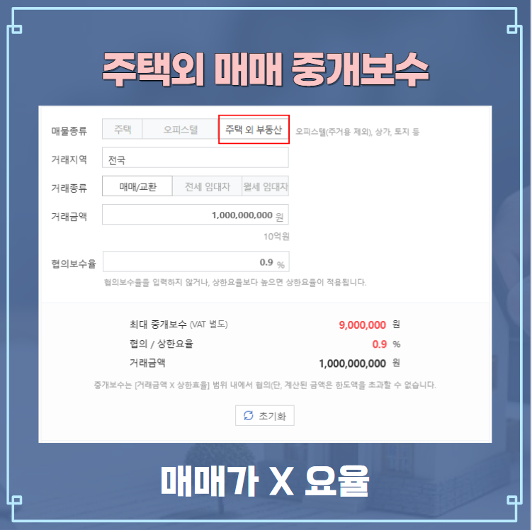 주택 외 매매의 경우는 상가, 토지 등이 있습니다. 매매가에 따라 요율이