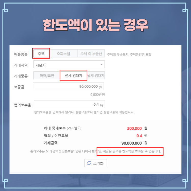 글 서두에 부동산 복비 계산 시 한도가 있는 경우가 있다고 했습니다.