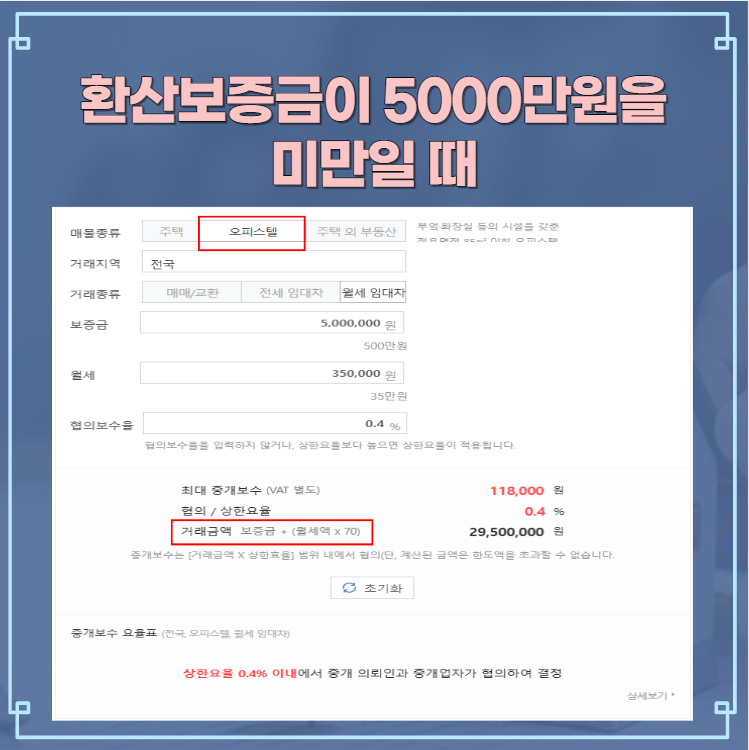 되는 겁니다. 따라서 보증금 500만 원, 월세 35만 원 오피스텔의 중개