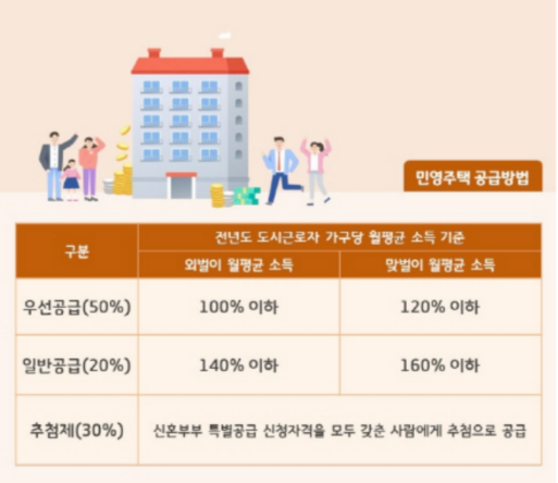 3. 요건을 모두 갖춘 신혼부부는 추첨을 통해 85㎡ 이하의 민영주택을 특공을 받을 수 있습니다.