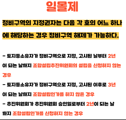 정비구역이 지정된 후 2년 동안 조합설립이 안 되면 그 구역은 해제됩니다.