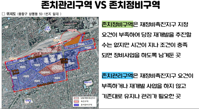 주민들이 낙후된 구역이라 재개발 사업을 하고 싶더라도 임의로 할 수 없습니다.