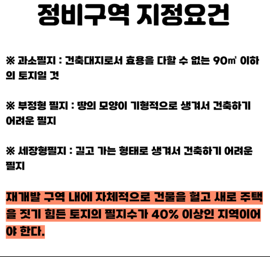 시의 조례에서 정하는 정비 구역지정 요건에 맞아야 합니다.