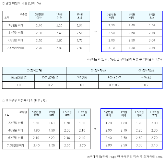 ● (버팀목) 1.5 ~ 2.9% → 1.7 ~ 3.3% / 인상폭 0.2%p ~ 0.4%p