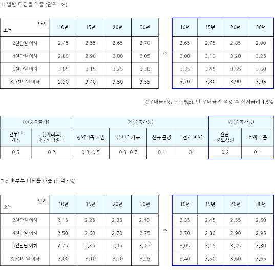 ● (디딤돌) 2.15 ~ 3.55% → 2.35 ~ 3.95 / 0.2%p ~ 0.4%p