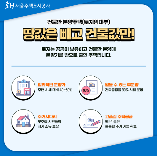 토지 소유권은 SH공사와 같은 공공기관이 보유하고, 분양자는 건물만 소유하는 형태입니다.