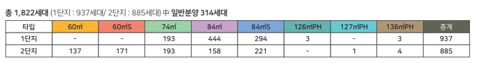 7월 오픈 예정으로 총 1822세대 중 일반분양은 314가구의 물량입니다.